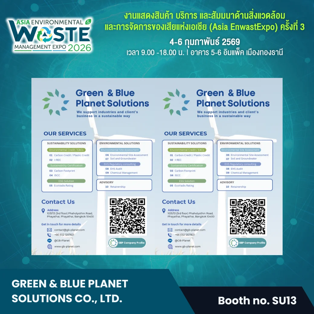 บริการที่ปรึกษาด้านสิ่งแวดล้อมและความยั่งยืน เช่น I-REC, ISCC, CFO, CFP, CBAM, Ecovadis, EHS, Soil and Ground Water, Chemical Management and Training