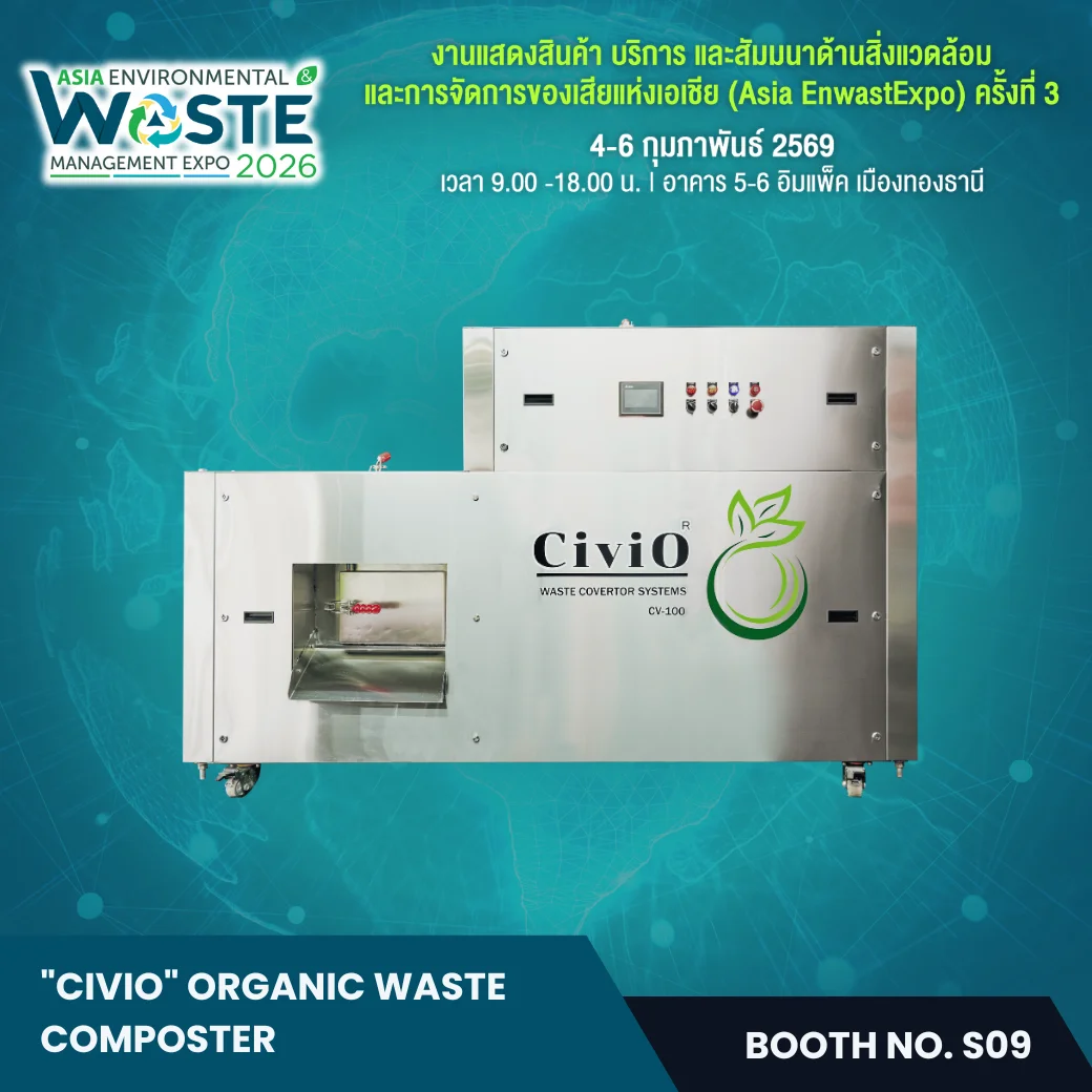 CiviO เครื่องกำจัดขยะอินทรีย์ที่ออกมาเป็นปุ๋ยภายใน 24 ชั่วโมง ด้วยระบบจุลินทรีย์ ไม่ปล่อยก๊าซมีเทน มีตัวบดสับภายใน ใส่เศษอาหารได้ทุกประเภท มีระบบ IOT